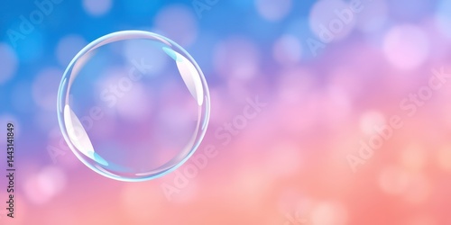 A single iridescent soap bubble floats gently against a soft, pastel-colored bokeh background.