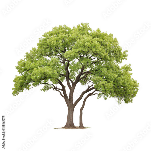 A single isolated tree with vibrant green foliage stands on white background.