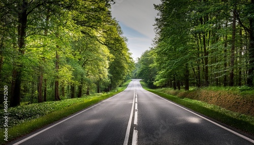 a single lane rural road running throug woodland trees on either side