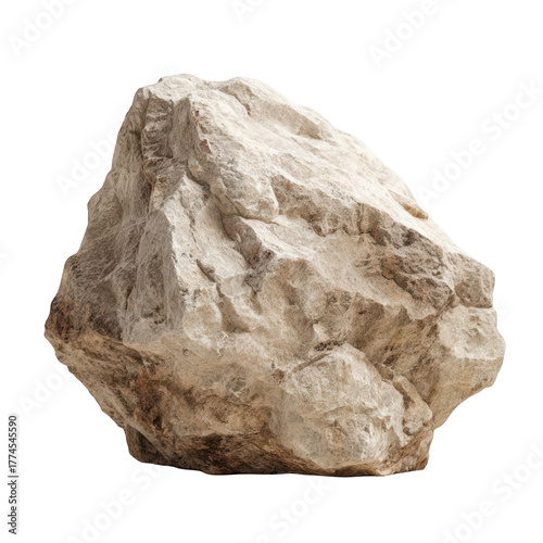 A single large weathered rock with a rough and craggy surface is presented in stark isolation against a pure black background