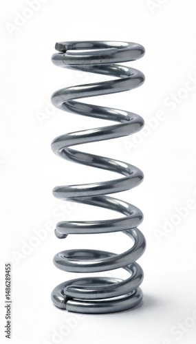 A single, metallic spring isolated on a pure white background Perfect for industrial, mechanical, or engineering design projects Shows detail of coils and material texture , coil, texture