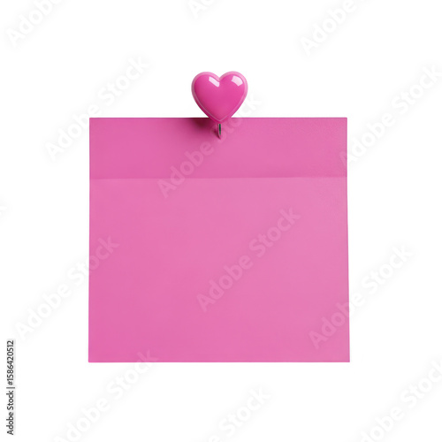 A single pink sticky note with a pink heartshaped pushpin, isolated on a transparent background
