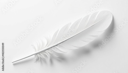 A single, pristine white feather on a stark white backdrop, animal, graphic, bright