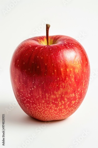 A single red apple sits on a white surface, ready for use in food, marketing or editorial content