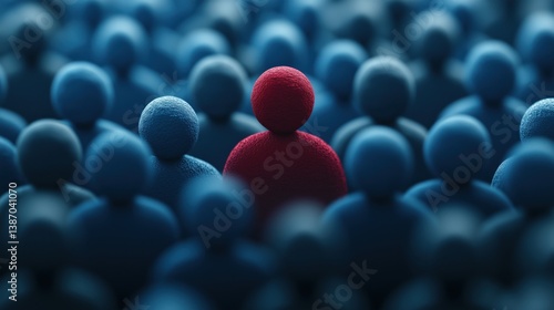 A single red figure stands out in a sea of blue figures, symbolizing individuality and uniqueness.