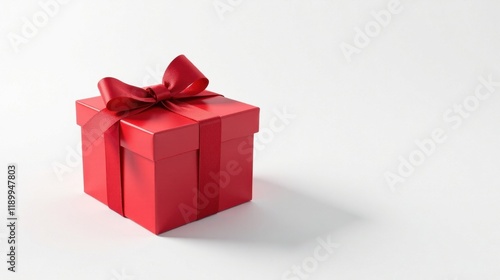 A single red gift box with a vibrant satin ribbon bow, presented on a minimalist white background, symbolizes celebration and thoughtful gifting