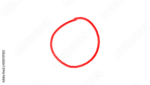 A single red hand drawn circle with a painterly texture isolated on transparent background