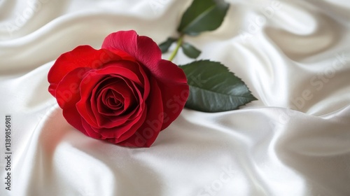 A Single Red Rose on White Silk