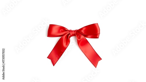 A single red satin ribbon tied in a bow, isolated on pure white, representing elegance and simplicity.