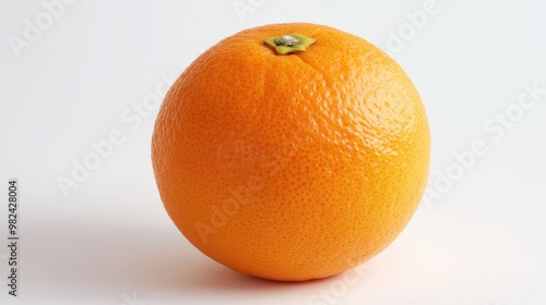 A single ripe orange with textured peel on a clean white background. The fruit is perfectly centered and well-lit, showcasing vibrant color and natural imperfections.