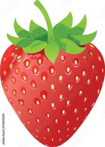 A single, ripe, red strawberry with a green top. An isolated, realistic vector illustration of a fresh and sweet summer fruit. Generative AI