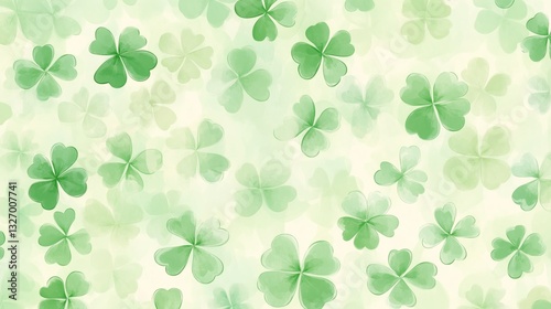 A single shamrock against an out of focus green background for Saint Patrick's day advertisement.
