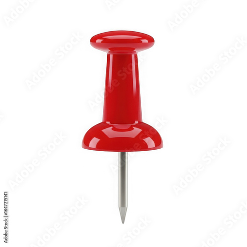 A single shiny red pushpin with a sharp metal point isolated on transparent background