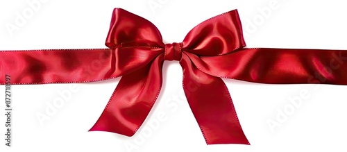 A single shiny red satin gift bow with a ribbon, isolated on a white background, creating an ideal copy space image.