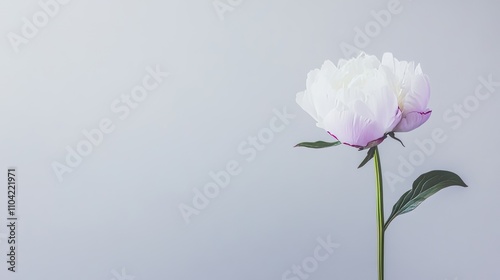 A single soft lavender peony against a muted grey background, close-up shot, Minimalist style