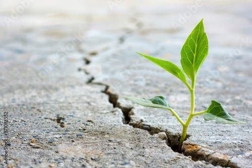 A single sprout growing through a cracked concrete floor, a new startup breaking into an established market
