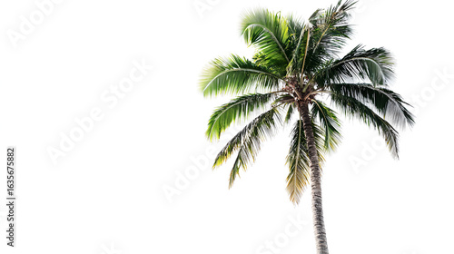 A single tall tropical palm tree with lush green fronds isolated on a clean white background.