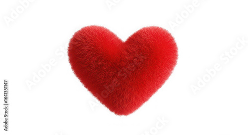 A single textured red heart shape with a soft fuzzy surface isolated on a transparent background for design isolated on transparent background