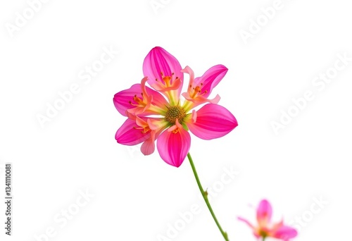 A single, vibrant flower blossoms against a stark white backdrop, flower head, petals