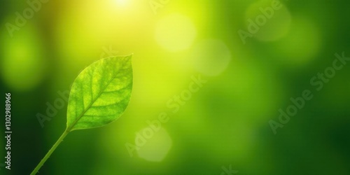 A single vibrant green leaf illuminated by sunlight against a softly blurred green backdrop, representing growth, nature, and springtime