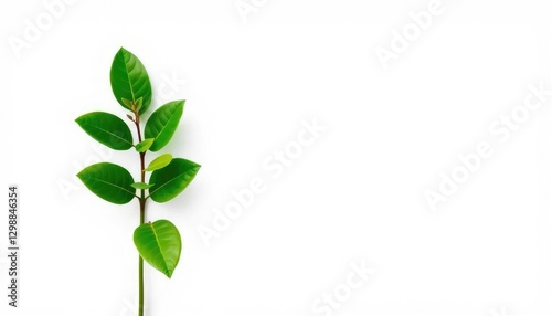 A single vibrant green plant, isolated against a pure white backdrop, branch, vegetation