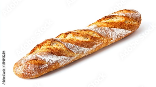 A single warm baguette fresh from the oven, isolated on white