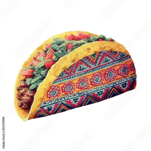 A single watercolor vivid 1970s taco with bold patterns