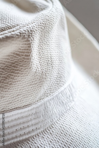 A single white hat sitting on top of a wooden table, isolated against a plain background