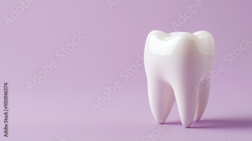A single white tooth isolated against a pink background.