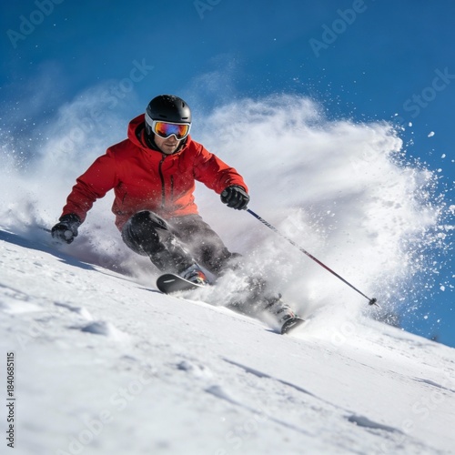 A skier skiing in the mountains