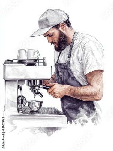 A skilled barista prepares coffee with precision at a modern cafe, showcasing the art of espresso making.