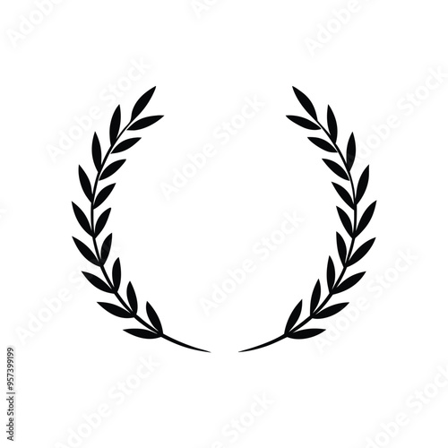 a SLaurel Leaf Wreath crown branch black logo icon vector silhouette, isolated white background
