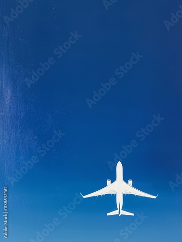 A sleek airplane glides effortlessly through a clear blue sky, its white fuselage contrasting beautifully with the endless cerulean backdrop.