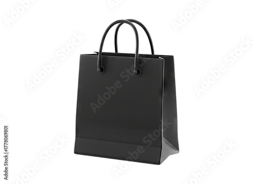 A Sleek Black Paper Shopping Bag With Sturdy Handles Isolated On A Transparent Background Perfect For Retail Packaging And Branding Projects