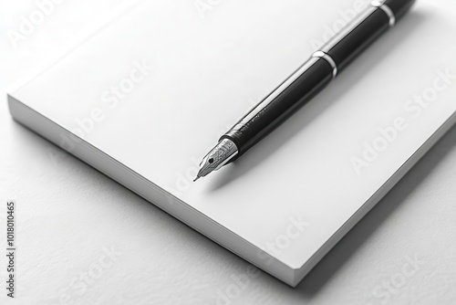 A sleek black pen rests on a blank notepad, perfect for taking notes or brainstorming ideas in a minimalist workspace.