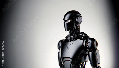 A sleek, black robot with advanced, futuristic aesthetics
