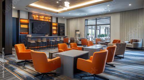A sleek conference room with modern lighting, comfortable chairs, and technology-equipped tools for team discussions