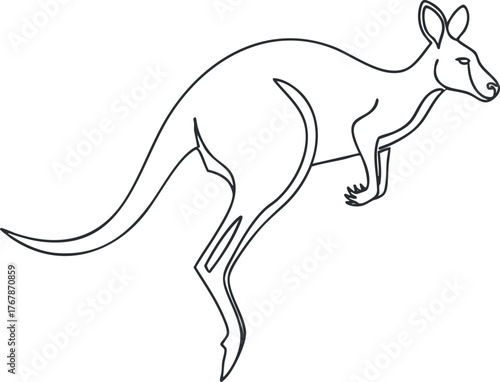 A sleek line art illustration depicting a kangaroo in a dynamic jumping pose.