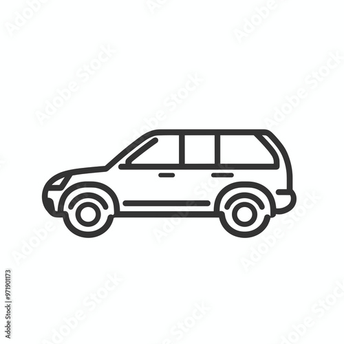 A sleek line drawing of an SUV is displayed, highlighting its profile and contemporary design. This icon represents versatility and modern transportation