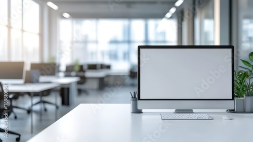 A sleek modern coworking office featuring open workspaces, ergonomic furniture, and glass partitions for a collaborative yet private environment.
