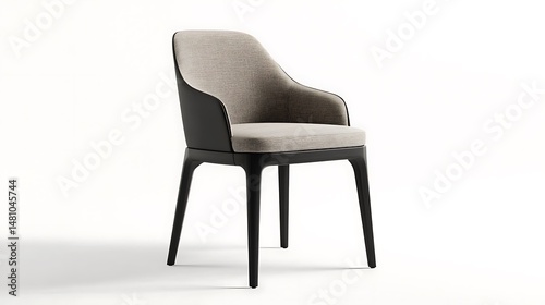 A sleek, modern dining chair with a contoured back, isolated against a white background