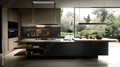 A sleek modern kitchen with minimalist design, featuring high-end appliances and luxury finishes, exuding contemporary elegance