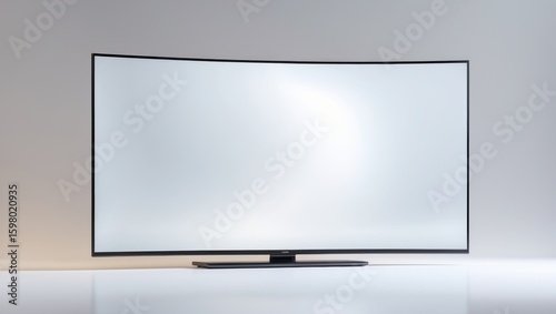 A sleek modern television set with a thin bezel placed on a minimalist surface against a plain wall.