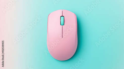 A sleek pink wireless mouse on a vibrant turquoise background, perfect for tech enthusiasts and modern workspace designs.