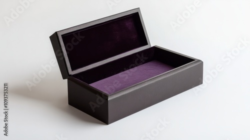 A sleek rectangular luxury box with soft velvet lining, partially open, on a white background