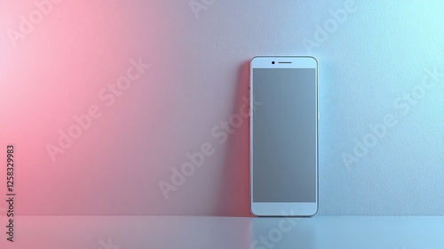 A sleek smartphone standing against a softly lit gradient background, showcasing modern design
