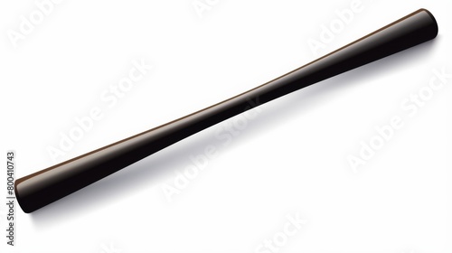 A sleek, solitary black wooden baseball bat casting a subtle shadow on a clean white backdrop, emphasizing simplicity and form