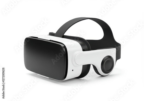 A sleek virtual reality headset with a black and white design isolated on a white background