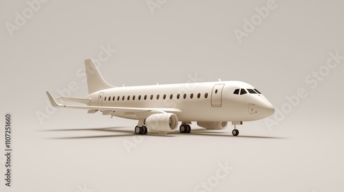 A sleek, white airplane model sits against a neutral background, highlighting its aerodynamic design and elegance.