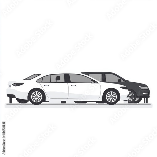 A sleek white sedan parked next to a stylish black SUV on a minimalist display.
